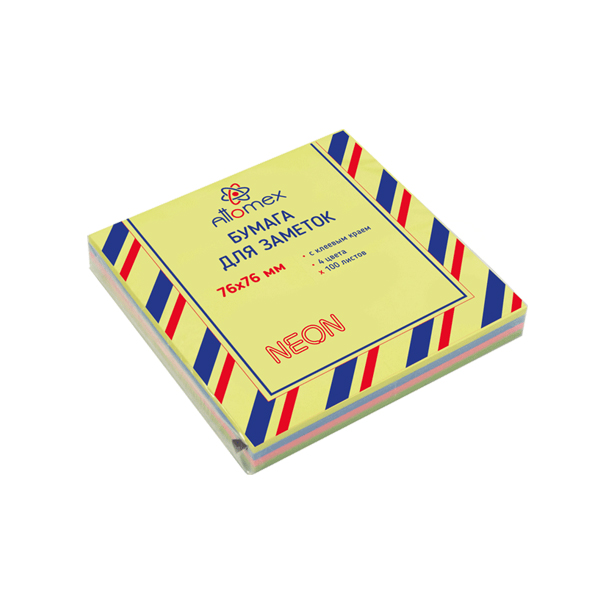 Блок самоклеящийся (стикеры) 76*76 100л 4цв неон ATTOMEX 2010202 [4657768023572] (582283)